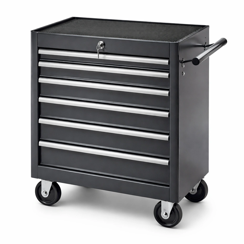 Carro de herramientas de metal negro con 6 cajones